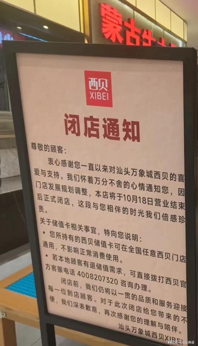 近日,汕头西贝万象城店准备关了。引发网络关注。