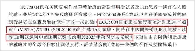 然而,根据招股书披露,ECC5004的全球IIb期试验及中国Ib期桥接试验预计至2025年第四季度才能完成,这一进度已显著落后于头部竞争对手。礼来的口服小分子GLP-1受体激动剂Orforglipron已进入III期临床阶段,而诺和诺德的司美格鲁肽、礼来的替尔泊肽等注射剂型早已在全球市场占据主导地位,并持续通过适应症扩展和灵活的价格策略巩固壁垒。