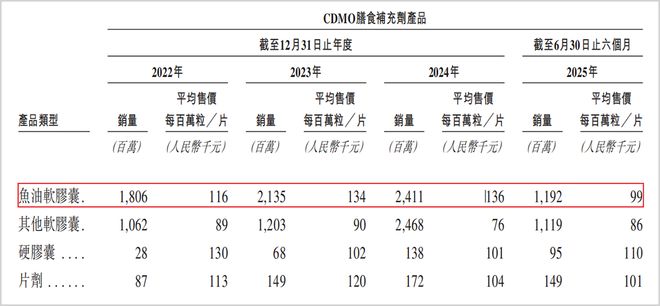 在上游原材料成本压力山大之余,禹王生物营养CDMO膳食补充剂价格也出现了下降,其中主力产品鱼油软胶囊的平均售价由2024年上半年的13.6万元/百万粒下降到了2025年上半年的9.9万元/百万粒,创出了自2022年以来的新低。
