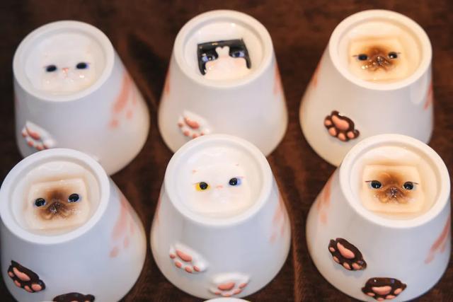 他的设计大多都和猫猫相关,其中最受欢迎的产品是一套猫猫杯,杯子的形状是猫头,杯身是猫猫衣服,杯盖是帽子,组合起来是一个完整的摆件,分开是实用的器皿。换一个杯盖就能换一个风格,既好看又好玩。