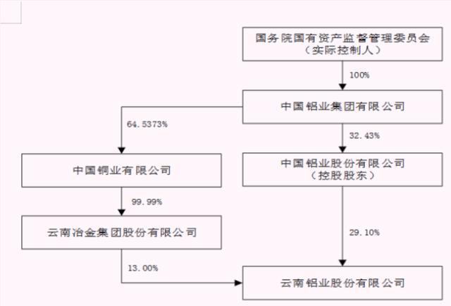 其股权关系是,直接控股股东中国铝业直接持有超过29%;中铝集团还通过中国铜业持有13%股份,合计控制超过42%股份,为间接控股股东。