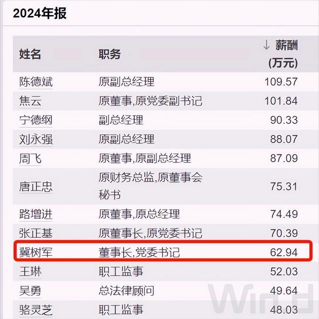至于公司高层,去年薪酬最高是原副总经理陈德斌,税前近110万元;刚刚卸任的董事长冀树军薪酬只有约63万,在高层中比较靠后。