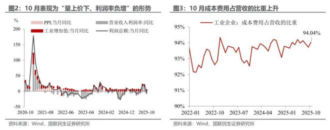 最大的原因,可能还是缘于“反内卷”。结合三因素框架(即对量、价、利润率进行拆解)来看,10月表现为“量上价下、利润率负增”的形势,与此前有两点明确的不同之处: