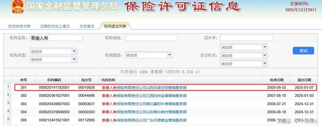 泰康人寿2025年还启动了大规模机构“瘦身”,此举也备受市场关注。根据金融监管总局网站显示,泰康人寿2025年共计撤销超过390家分支机构。