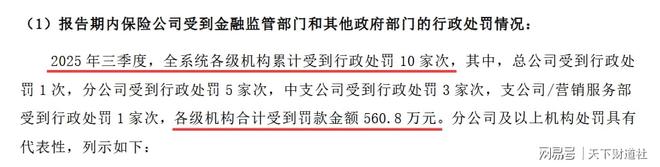 另据偿付能力报告显示,泰康人寿2025年三季度受到行政处罚10余起,合计受到罚款金额561万元。