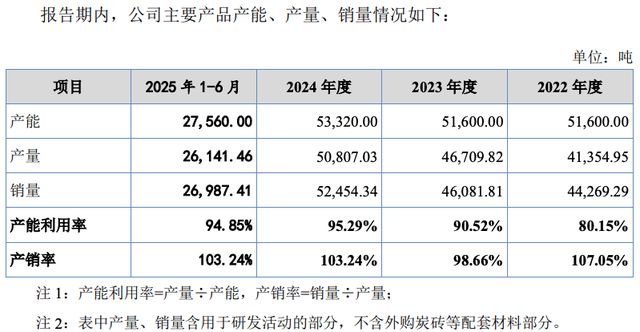 瑞尔竞达在2024年产能与产量双增长的情况下,电力用量却大幅下降。《招股书》显示,2022年-2024年,瑞尔竞达的产能从5.16万吨增长到5.33万吨,产量从4.14万吨增长到5.08万吨。