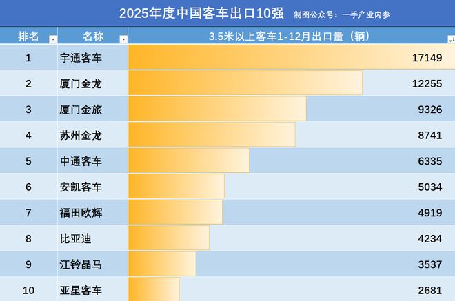 另附:2025年1-12月中国客车出口厂商10强,数据源于:中国客车信息网