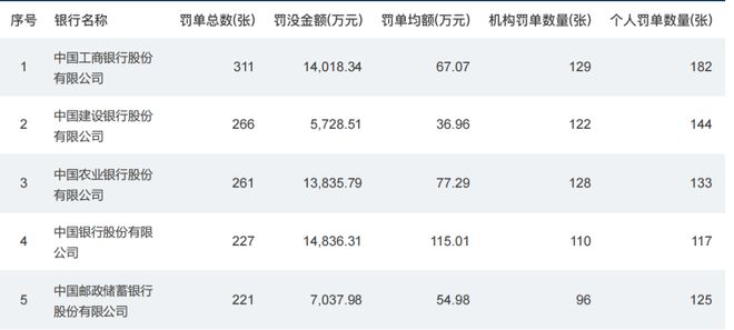 一级分行中,广东省分行、四川省分行、海南省分行、河北省分行等均收到罚单,其中广东省分行被罚合计176.54万元,河北省分行罚款金额达221 万元,海南省分行罚款187万元,四川省分行则被罚款160万元;