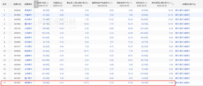 进入2025年滑态仍在延续,前三季营收69.18亿元、净利25.44亿元,较2024年同期的76.35亿元和32.06亿元分别下降9.39%和20.66%。据同花顺,2025年前三季,17家上市城商行中仅3家营收下滑、1家净利下滑。