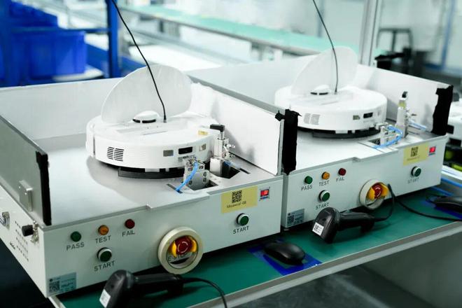 工作人员向霞光社表示,“质检环节多个部分来自于石头科技自己的发明,这也是自有工厂的优势。”一台台扫地机通过设备质检检测后,才能放入实际场景进行测试,确保每台扫地机都符合出厂标准。