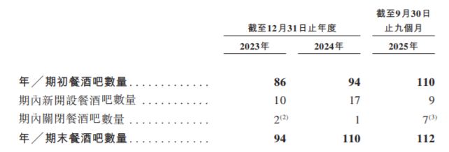 截至2025年9月30日,公司已在全国40个城市开出了112家餐酒吧,且全部都是直营。