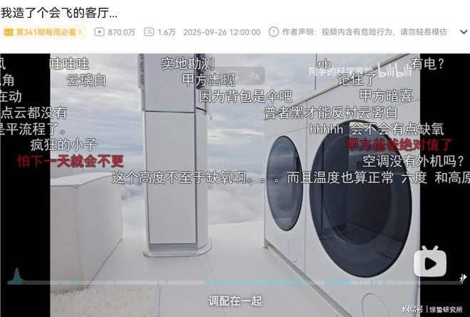 在B站,好的商业可以是好内容本身。2025年,品牌商单在B站每周必看榜的占比达到24%。A2奶粉和UP主@爱打灭霸的响指君,用自家猫咪和老鼠还原动画片《猫和老鼠》奶粉失窃的片段,激发起95后人群的童年回忆,也唤醒他们消费成人奶粉的需求;为了让用户对COLMO新品“云璃白”家电有最直观的了解,UP主@神奇阿宇Ayu脑洞大开,直接把客厅搬到2000米高空,在云层中体验“云璃白”电器。该视频不仅登上每周必看榜,屏幕中还不断涌现“甲方爸爸暗喜”等弹幕。