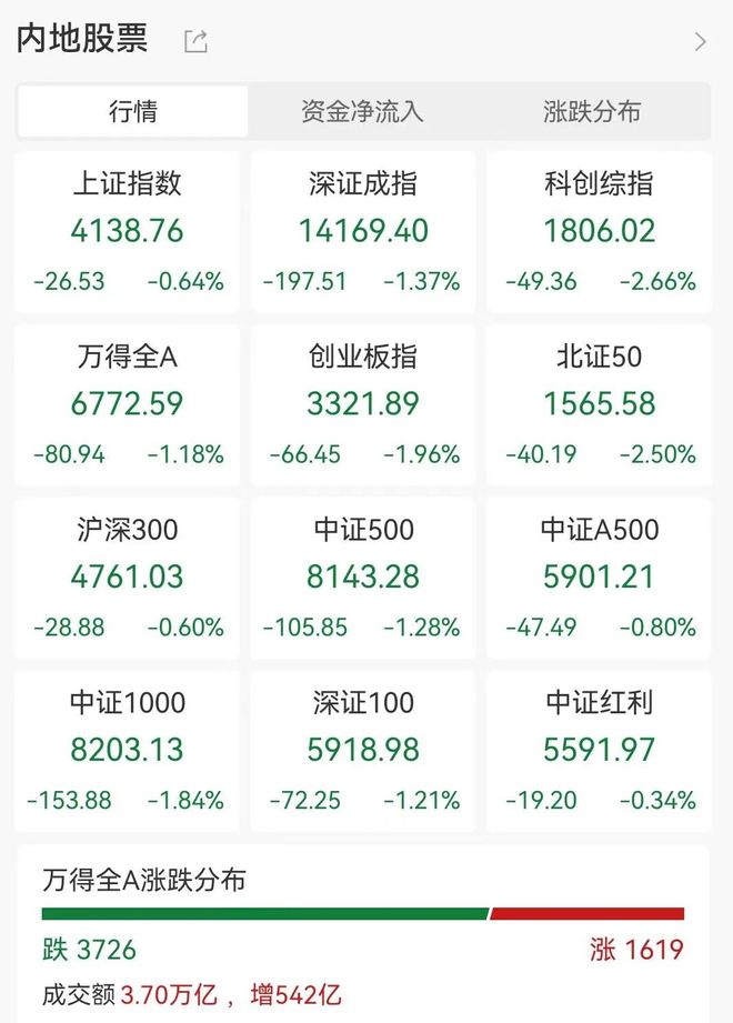 1月13日,A股三大指数集体回调,沪指终结17连阳。截至收盘,沪指跌0.64%,深证成指跌1.37%,创业板指跌1.96%。沪深京三市成交额3.7万亿,再创历史天量。