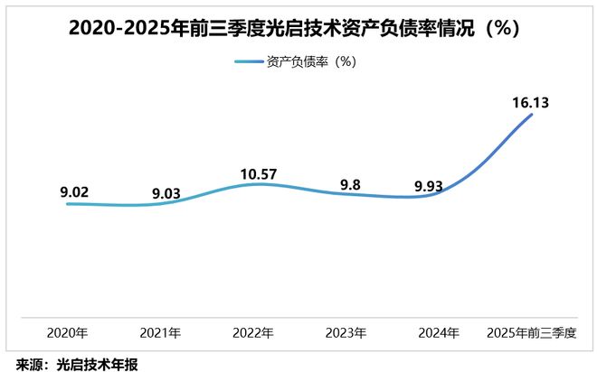 与此同时,光启技术几乎没有有息负债,资产负债率很低。2020-2025年前三季度,公司的资产负债率都在20%以下。