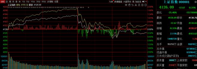 今日午盘后市场快速跳水,14:00左右沪指一度下探至4106点附近,随后震荡反复。虽然最后沪指以微跌报收,但整体跌幅不大,资金承接力度不错。