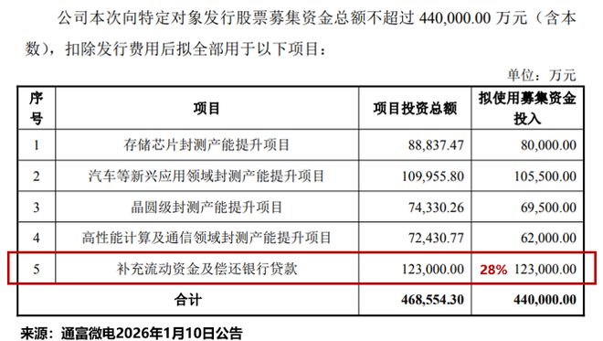 不禁好奇,通富微电此次高达44亿元的定增计划暴露出其怎样的野心?其中,12.3亿元用于补充流动资金及偿还银行贷款是否真的有必要?