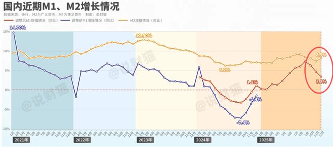 而M1增速回落,则透露了 企业短期扩张意愿不强,处于 “持币待投” , 资金 “活化” 程度不足 。