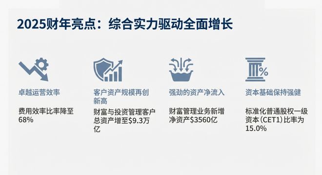 - 资产吸金兽: 投资者最应该关注的数据是“净增资产”(Net New Assets)。在Q4单季度,摩根士丹利就吸纳了 1223亿美元 的新资产,全年更是高达 3560亿美元。这直接推动了财富和投资管理部门的总客户资产规模达到了惊人的 9.3万亿美元。