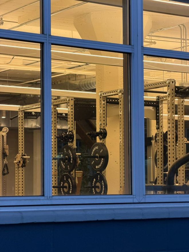 其次,基于薪酬、津贴或团队获得的算力多少而产生的嫉妒和等级秩序更少,而这些往往是有毒的,却根植于人性之中。你的组织瞬间变得扁平,并且可以保持扁平。伴随外部资金而来的不仅是商业模式的期望,还有估值、股票期权,以及一个高估值AI实验室所有的浮华装饰,无论这种估值在早期是多么没有意义。来自梦幻估值的纸面财富往往会让位于膨胀的自我价值感、嫉妒,以及被资金更雄厚的竞争对手挖角。这些浮华装饰不仅仅关乎个人财富创造,还与实验室的品牌、声望和吸引更多人才的魅力捆绑在一起。而这些装饰可能会变得相当荒谬,比如该实验室办公室健身房里那些印有“Thinking Machines”品牌的杠铃片: