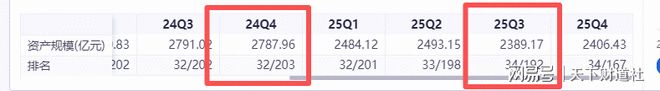 其中,国投瑞银2024年末规模比海富通高出超千亿元,而2025年三季度末,已被海富通超越。