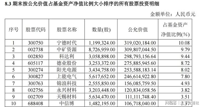 基金公告显示,国投瑞银新能源混合2024年末前十大重仓基本集中在新能源赛道,覆盖锂电池、光伏、储能等细分领域,比如宁德时代、阳光电源等龙头标的均在列。