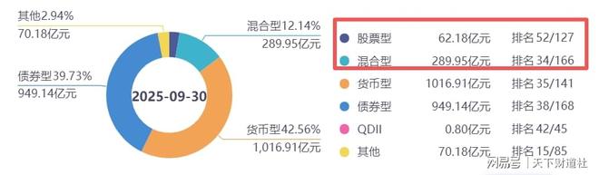 同花顺iFinD显示,截至2025年三季度末,国投瑞银的管理规模约为2390亿元,而权益类产品(包含混合型、股票型)合计仅约352亿元,占比不足15%。