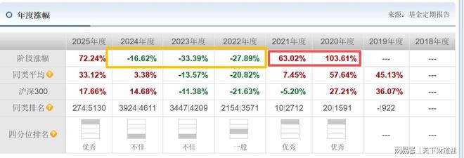 以施成目前管理规模最大的国投瑞银新能源混合为例,其典型折射了施成这几年的收益规律——2020年、2021年重仓新能源获得超额收益,2022-2024年陷入大额亏损、2025年通过赛道切换实现业绩反弹。