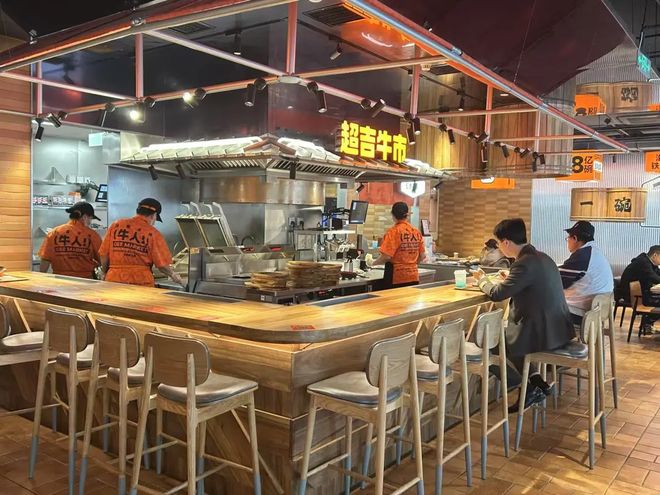 去年年初,吉野家在北京开了家名为“吉野家·超吉牛市”的主题店,这家店首次打破了吉野家依靠后厨标准化出餐的传统模式,将半封闭厨房改为明档厨房,并在厨房的外围设置了U型吧台,主打现点现做的铁板菜。