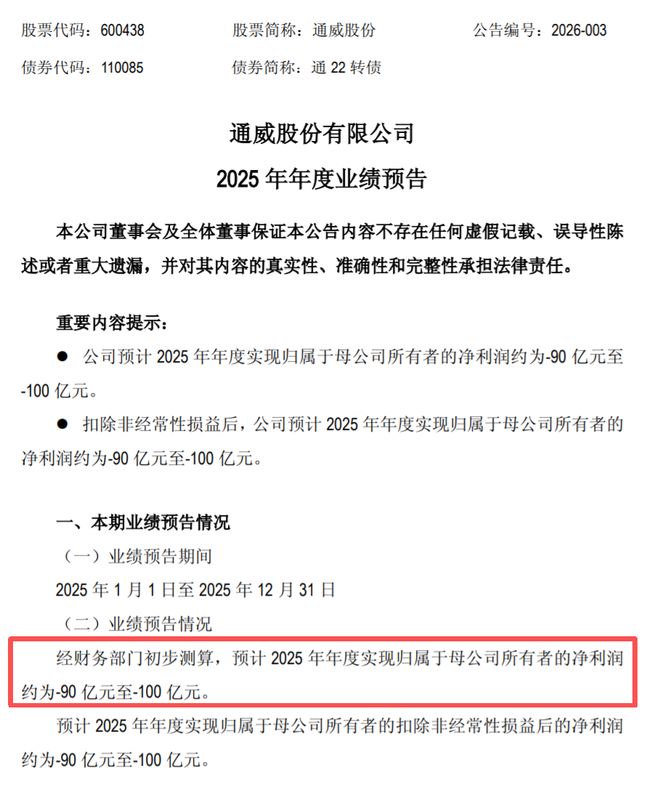 行业老大通威,预亏90-100亿;