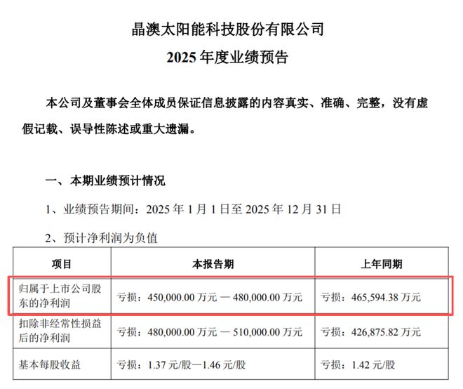 晶澳科技,预亏45-48亿;