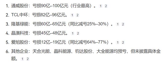 还有晶科能源、钧达股份、大全能源等,业绩预告全部都是亏亏亏!