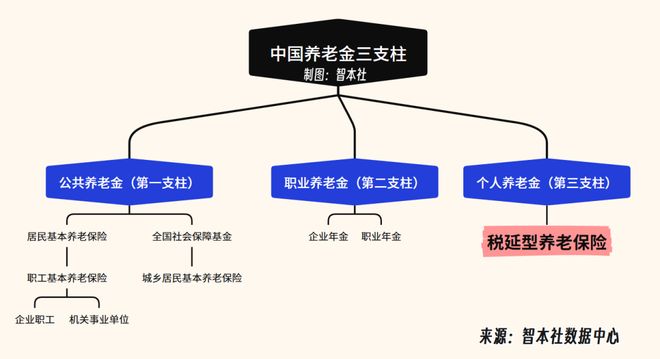 如图所示,在养老制度构成上,中国养老体系遵循世界银行在1994年总结各国经验并提出的三支柱方案,由公共基本养老保险、补充职业养老保险和个人养老金三支柱构成。