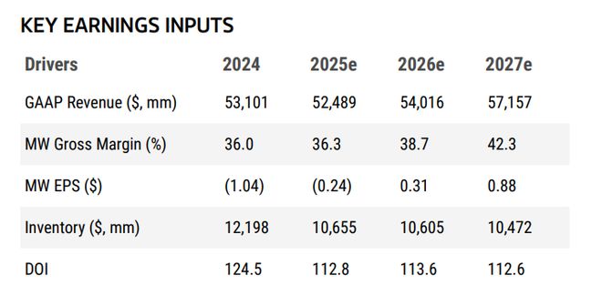 展望明年第一季度(3月季度),摩根士丹利预测英特尔营收为125.52亿美元,略高于华尔街预期的125.25亿美元。但在毛利率方面,摩根士丹利给出的预测仅为34.9%,低于市场预期的36.1%,这反映了Lunar Lake较低的毛利率以及18A工艺启动成本带来的持续压力。