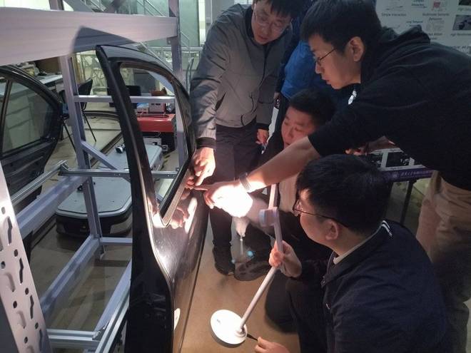 先看拧紧,这是个非常精细的动作。要完成汽车装配中的拧紧,需要先有拧紧机构,再配合一套能精细调整机构姿态、方位、力度、力控的模型。