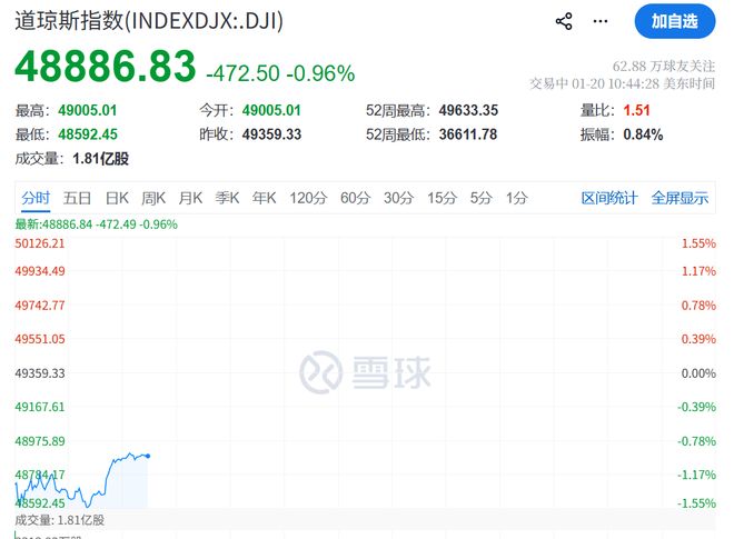 1月20日晚间,美股开盘重挫,随后跌幅略有收窄。