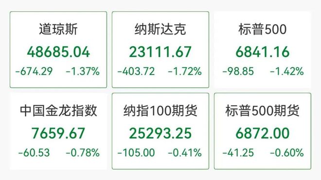 大型科技股方面,英伟达、谷歌、苹果、特斯拉集体下跌,其中英伟达大跌超3%。