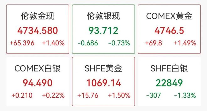 商品方面,现货黄金短线走高。现货白银快速走低,现跌1%,盘中一度涨1.5%创历史新高。源达信息证券研究所所长吴起涤对21世纪经济报道记者表示,地缘政治风险增加,多国政府和个人投资者都在增加对黄金等避险资产的配置。从中长期看,金价涨势依旧可期。道富投资管理公司黄金策略主管Aakash Doshi称,整体趋势依然稳固,金价在2026年突破每盎司5000美元的可能性已不再渺茫。