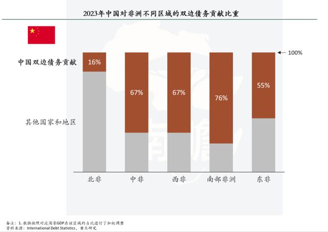 在北非,中国双边债务占比只有十几。