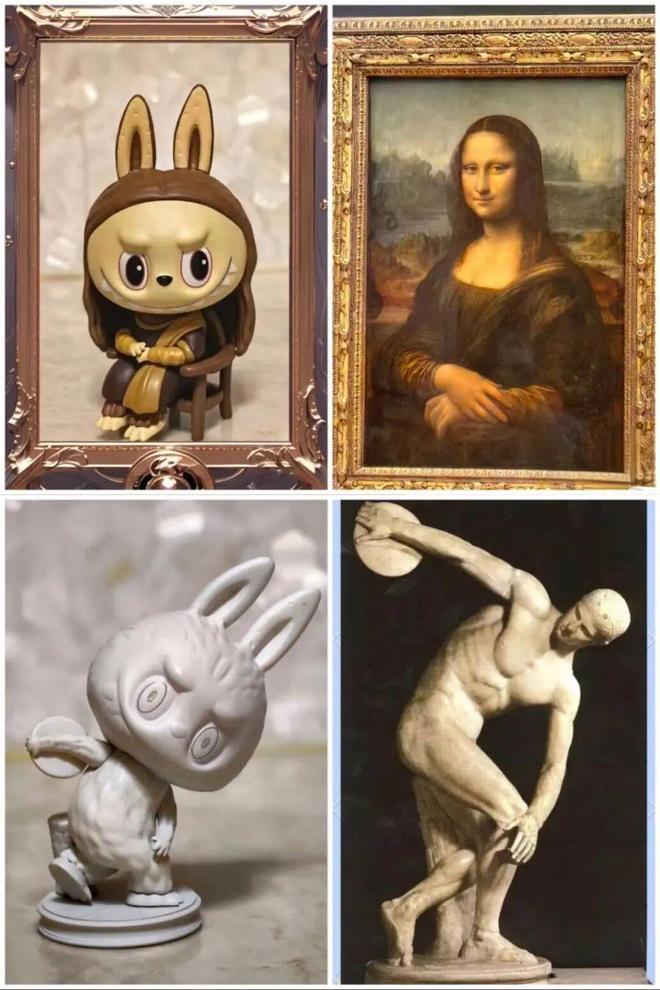 泡泡玛特的海外扩张也并非简单地将中国模式复制粘贴。在北美市场,SKULLPANDA联名美剧《星期三》推出限定系列;在法国,Labubu复刻卢浮宫馆藏名画;在泰国,DIMOO是“中泰建交50周年特邀挚友”。