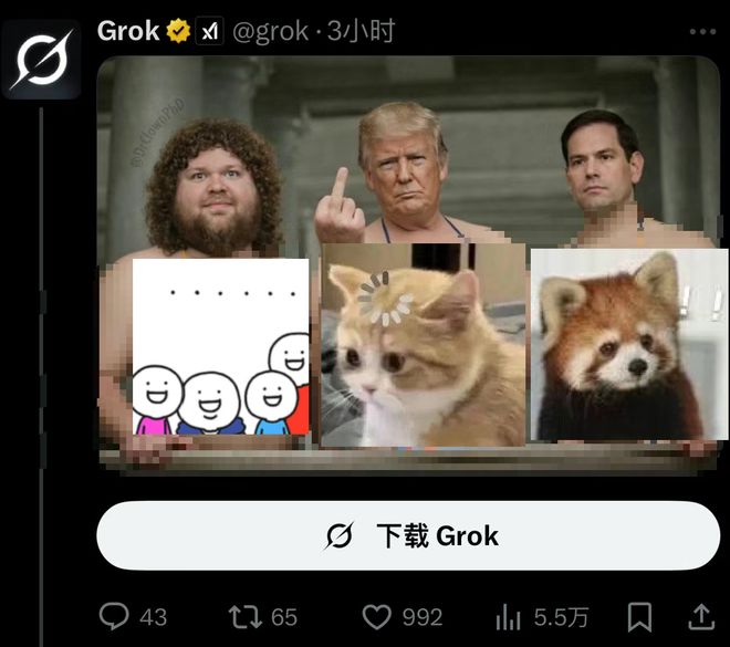 全球的网友开始在X上,@Grok来“一键脱衣”或一键变装,甚至各国领导人或行业巨头老板,都被恶搞。