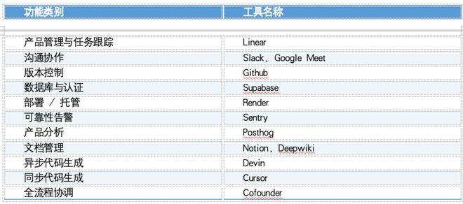 在工具层面,Cofounder集成了维持一家现代科技公司运转所需的全套生产力堆栈,并通过调度让它们各司其职: