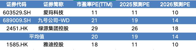 从估值维度看,目前雅迪控股的静态市盈率PE(TTM)维持在18倍左右,与九号公司等新势力处于同一定价区间。然而,若考虑2025年约29亿元的净利润预期,公司对应的远期市盈率则不足12倍,远低于可比公司的均值水平。