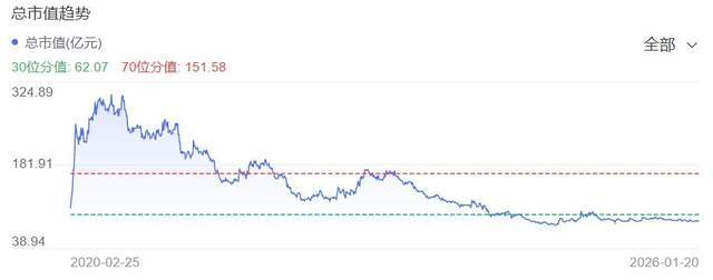 在资本市场,良品铺子曾创造过逾80元/股,总市值超300亿元的辉煌战绩,截至2026年1月20日收盘,良品铺子市值仅余48.28亿元,较5年前的历史最高点蒸发逾8成。