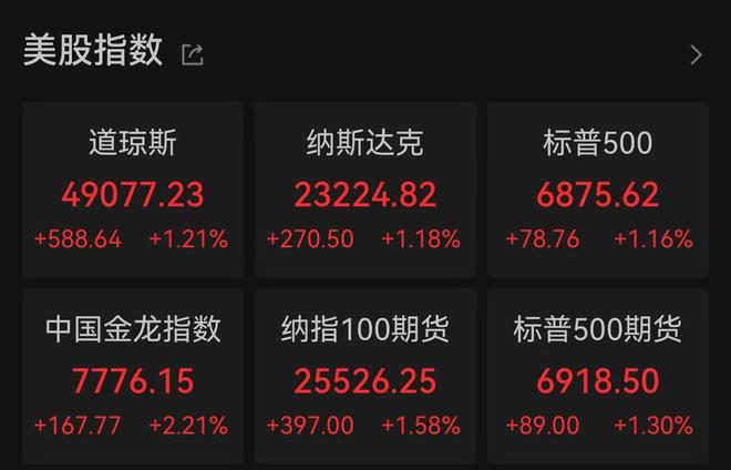 中新经纬1月22日电 美东时间周三(21日),美股三大股指集体反弹收涨,道指涨1.21%,标普500指数涨1.16%,纳指涨1.18%。