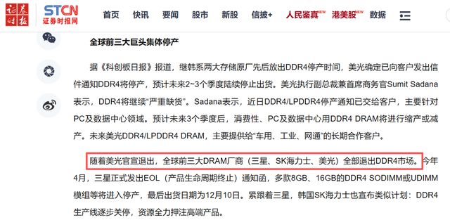 从时间轴来看,存储芯片最早是从2025年4月开始提价,当时三星率先宣布将逐步停止生产DDR4内存颗粒,从而专注于生产更高端、利润更高的DDR5、LPDDR5和HBM内存。此后SK海力士也开始逐步减少DDR4产能,计划将其产能压缩至20%左右。美光更是在近期宣布退出旗下Crucial(英睿达)品牌的消费级业务……