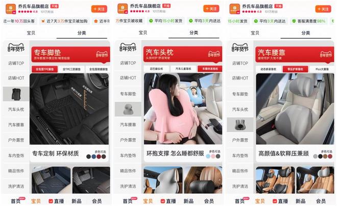 正因对用户反馈的重视,乔氏一边在脚垫、头枕、腰靠等刚需品类里保持稳定的迭代速度,一边根据消费者需求将品类做精做细。“消费者买一台新车,在乔氏可以一站式购买全”。完备的产品矩阵,正是乔氏的产品竞争力之一。