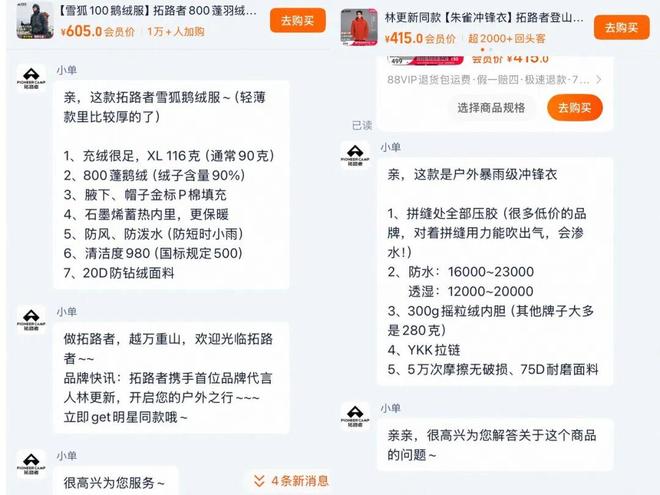 设计师参与下,拓路者客服话术的升级 图源:拓路者官方旗舰店