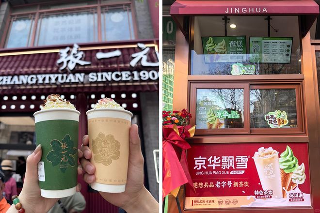 张一元旗下的“元来是茶”,2025年5月在西城区大栅栏西街1号开出首家门店,不仅推出了“茉莉醇白、“金桂龙井”等在内的12款新式茶饮,价格在20-50元/杯,消费者可自选糖分,还可更换0卡糖。2025年8月,品牌又在五道口开出了第二家门店。