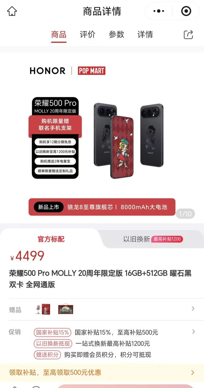 就在“电子木鱼”走红的前几日,该司与荣耀合作的联名款手机刚刚发布。这款深度定制产品,从外观到系统UI都融入了泡泡玛特标志性的IP形象,显示出该司正积极拓展IP的商业边界,尝试从潮玩向更广阔的消费电子产品领域渗透。