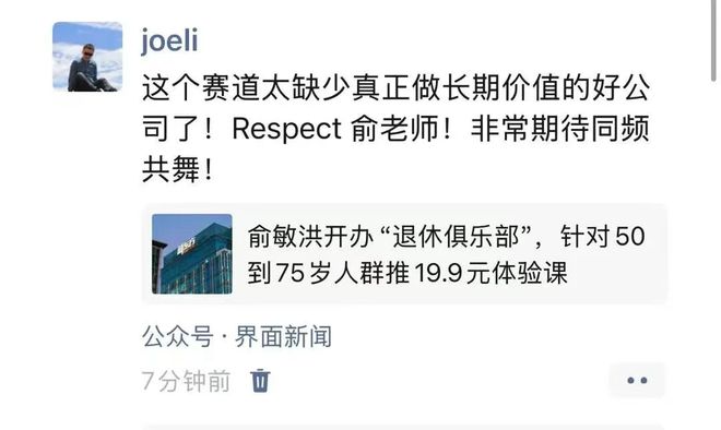 “这个赛道太缺少真正做长期价值的好公司了!Respect俞老师!非常期待同频共舞!”